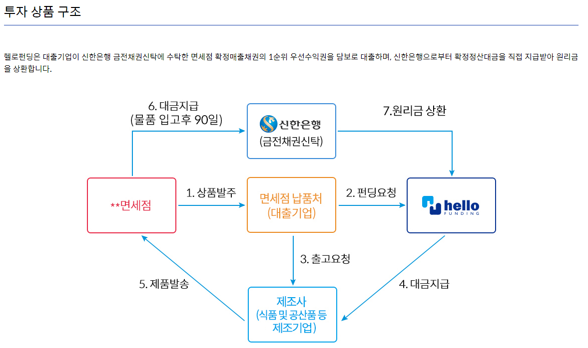 헬로펀딩의 투자상품 중 '면세점 매출채권' 상품입니다.