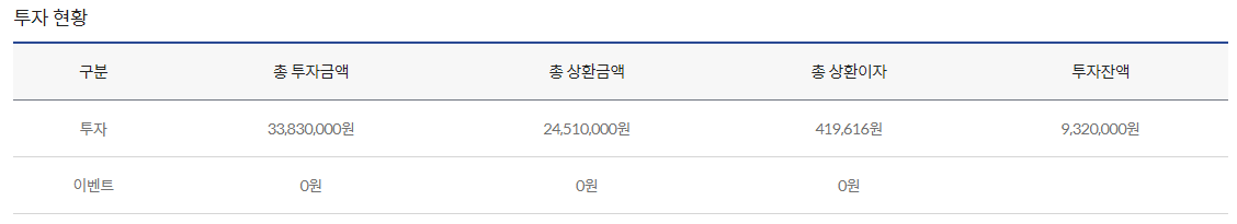 지금까지 약 2450만원을 상환받았고 42만원의 수익이 생겼습니다.